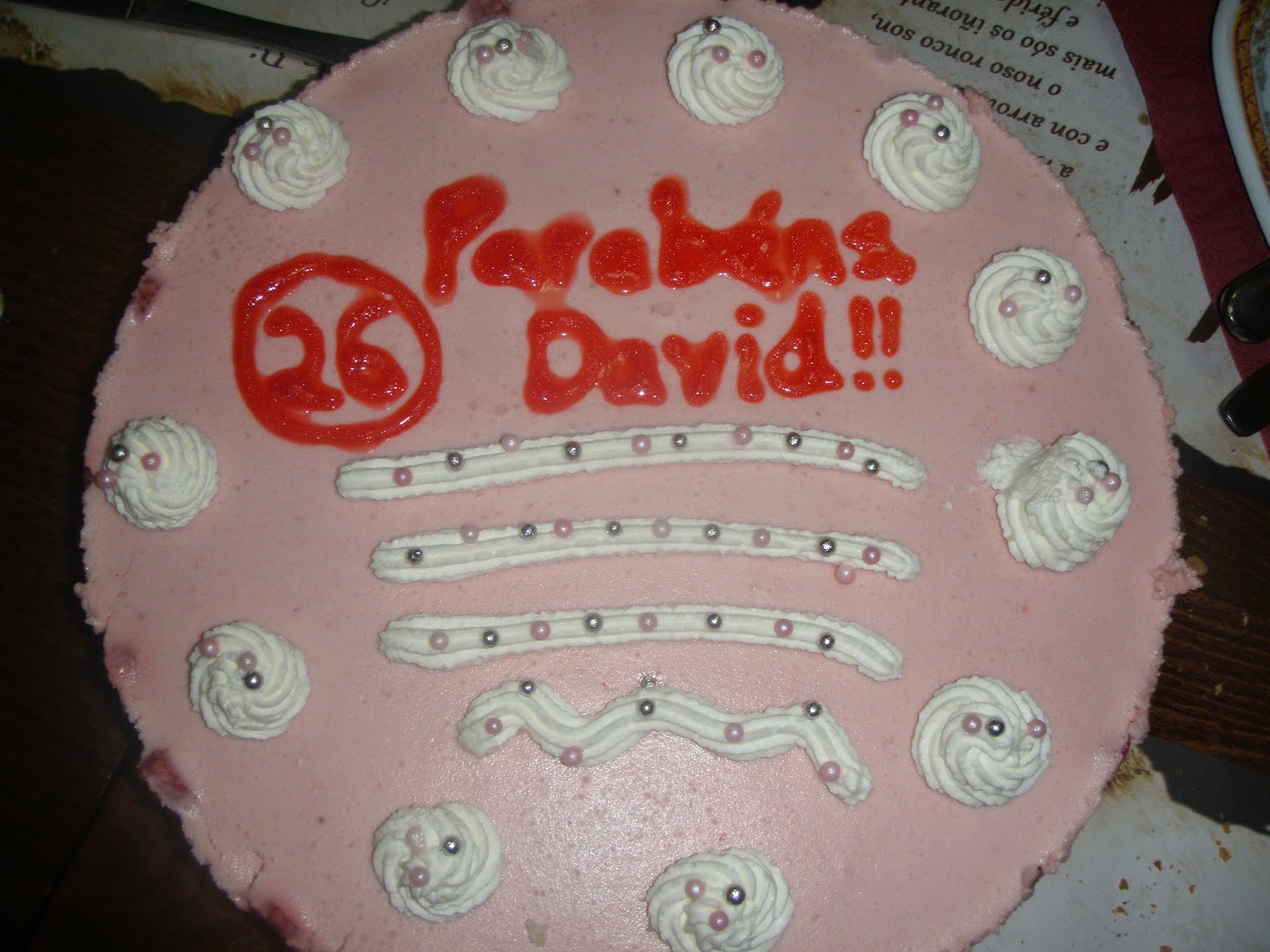 Para finalizar, podemos decorar a nosa torta. Nós, neste caso, utilizamos un lapis comestíbel para escribir unha felicitación e montamos unha pouca máis de nata e, coa axuda da manga pasteleira, fixemos uns debuxos. Así mesmo, colocamos unhas perlas de azucre que axudan a que a decoración sexa máis chamativa. Porén, podedes utilizar amorodos, froitos secos, chocolate.. que seguro tamén queda espectacular.